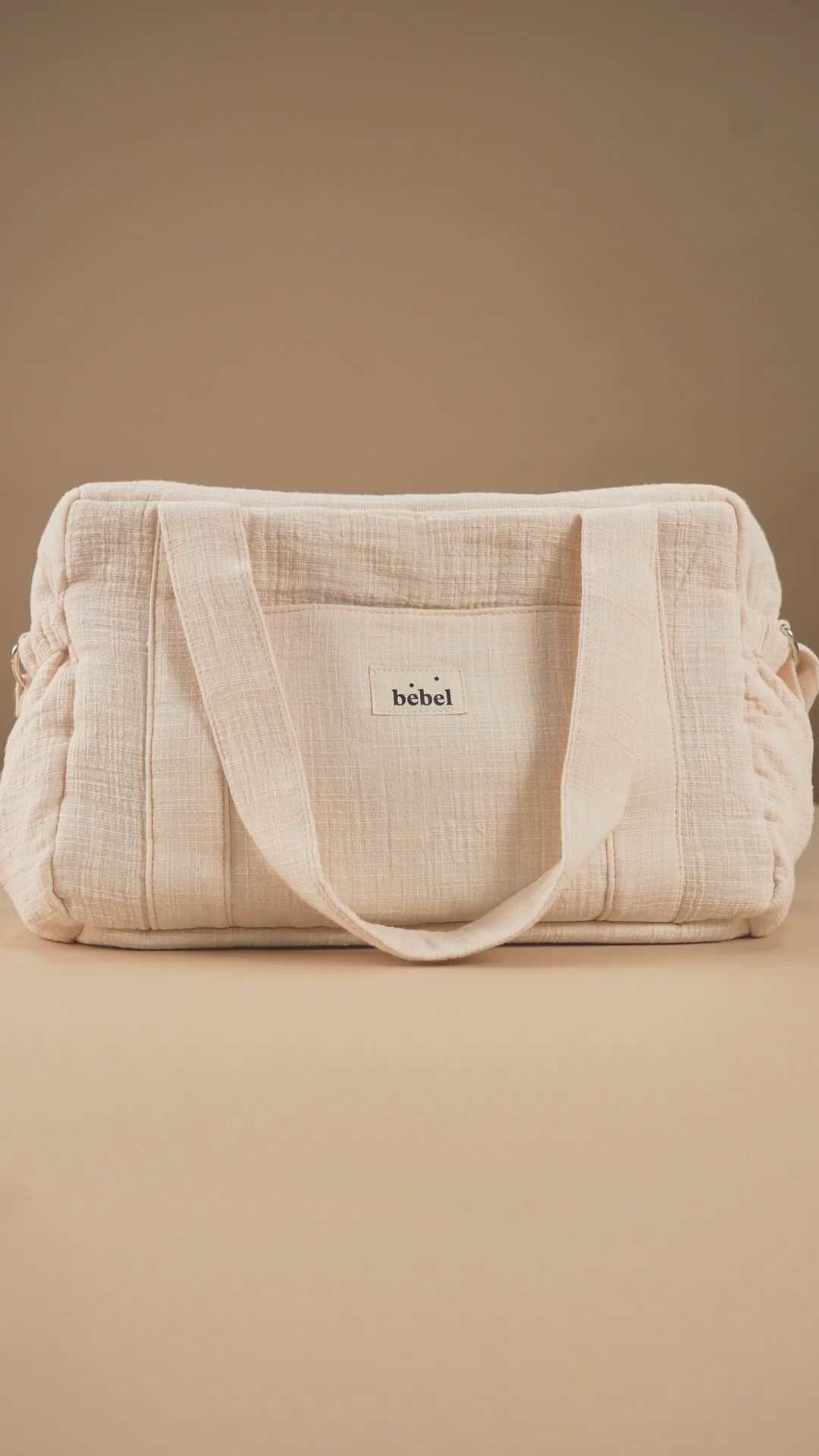 L'intérieur du sac, totalement imperméable, est composé de 2 poches plaquées et 2 poches à biberon et à l'extérieur 3 poches supplémentaires (2 poches élastiques sur les cotés et 1 poche à l'avant).