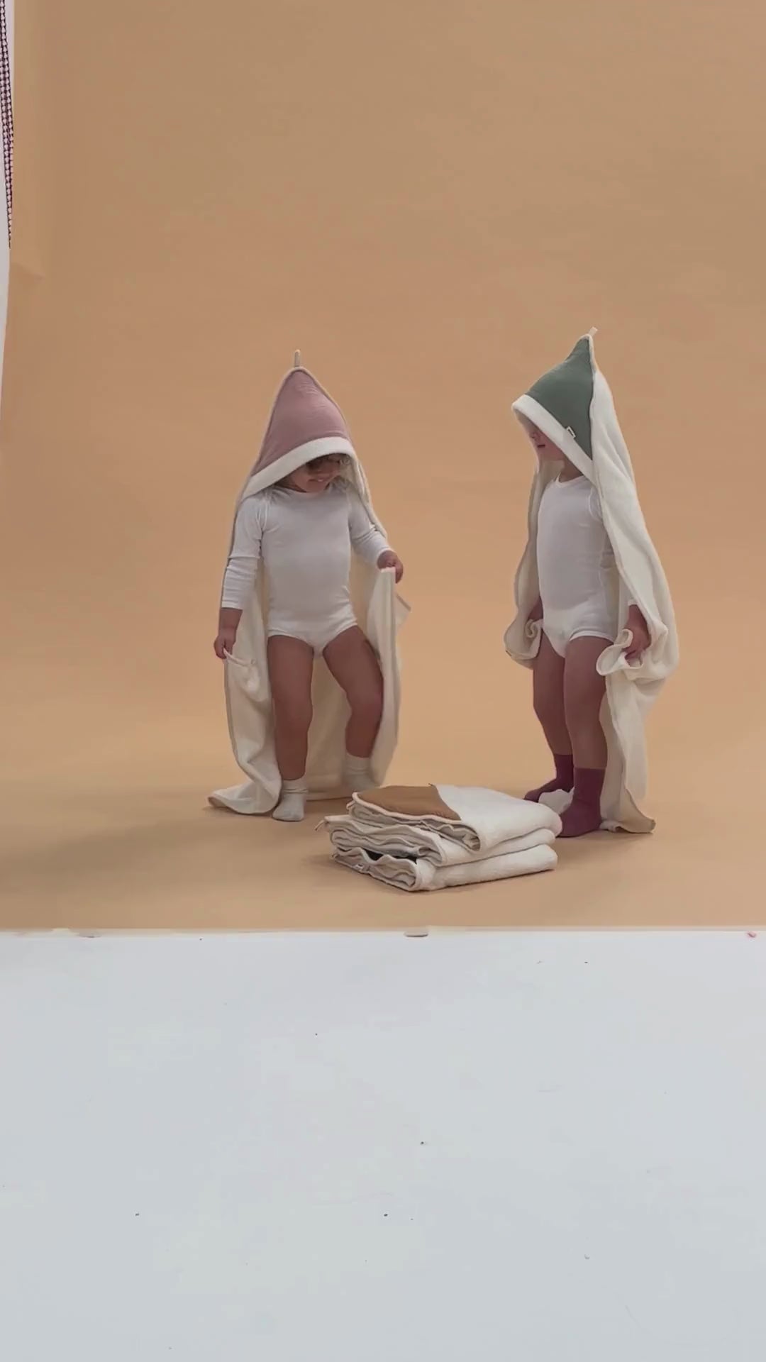 La cape de bain Bebel en éponge et double gaze Oeko-Tex se veut simple et fonctionnel.
